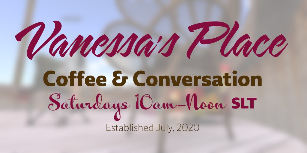 At Vanessa’s Place II at Innu I transitioned from weekly art exhibitions to longer duration runs. The first was a 14-year retrospective of selfies by Connie Arida. The current (November) exhibition is the Morning Coffee Challenge, a flickr group I created for avatars to share photographic experiences of their morning cup of coffee.