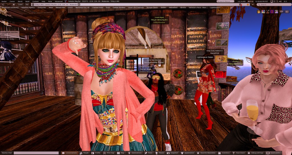In transitioning from Trilby5thDimension to Trilby6thSense — a transition she makes every time she accumulates about 300k inventory items and starts finding it hard to move her avatar — Trilby celebrates the human urge to acquire. It starts with “squirreling” food away for a rainy day. It weaves through the accumulation of wealth and collections of every sort: from stamps to clothes to exotic pets. There’s a little Imelda Marcos in all of us! (Marcos was reported to own about 7,500 pairs of shoes)