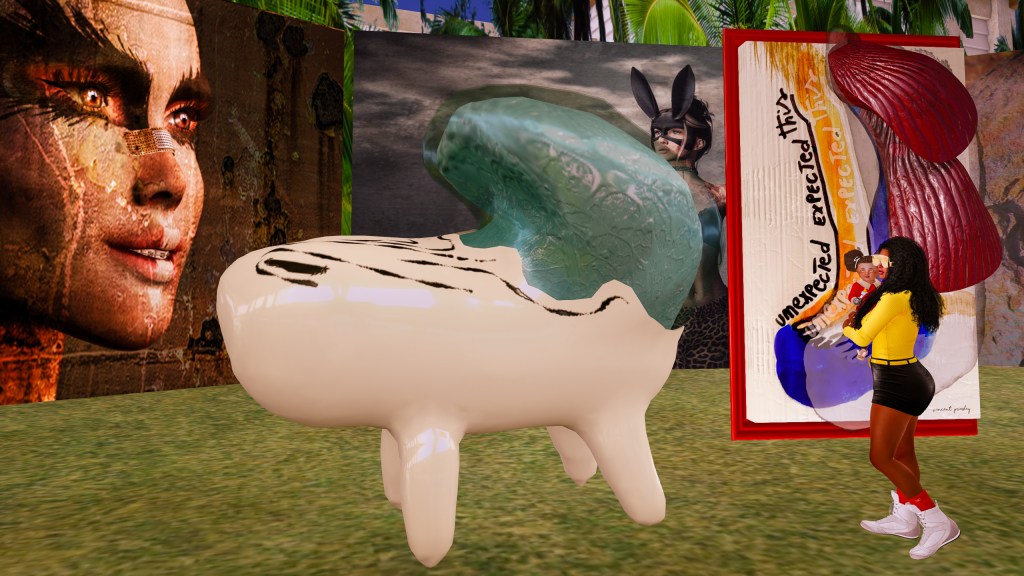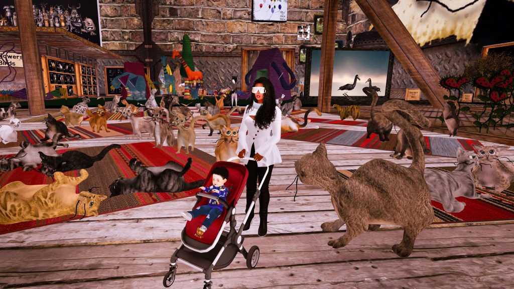 By contrast, when you collect a piece of art in SL, your L$ go directly to a real person. Your “vote” of confidence might just brighten their day. We live in a world where the gods setup the infrastructure and then more-or-less walked away. That’s probably a good thing. It’s up to us now. This world is as beautiful, caring, loving, and sharing as we choose to make it. I was fortunate enough to have a few L$, and I’m pleased I was able to spend them curating a new exhibition with SL creators.