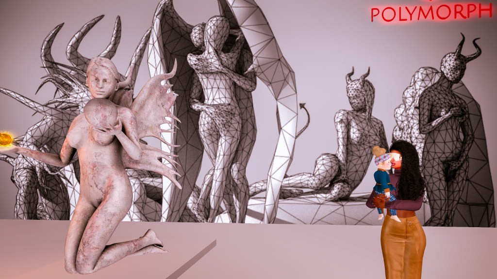 The exhibition I’ve chosen to curate with these funds is Landscapes of the Avatar Body. It is photography, like Sondra Landar and Dido Haas using a VR camera to explore the physical and emotional landscape of their own body. It is sculpture, like Cica Ghost and Vincent Priesley creating meshworks that explore “monster” bodies or the journey inside our own bodies. It is painting, like Lika Cameo and Yobe Ayukawa finding the landscape of love in every beautifully rendered joint of the body, or more impressionistically, the landscape of light that radiates from an inspired body.